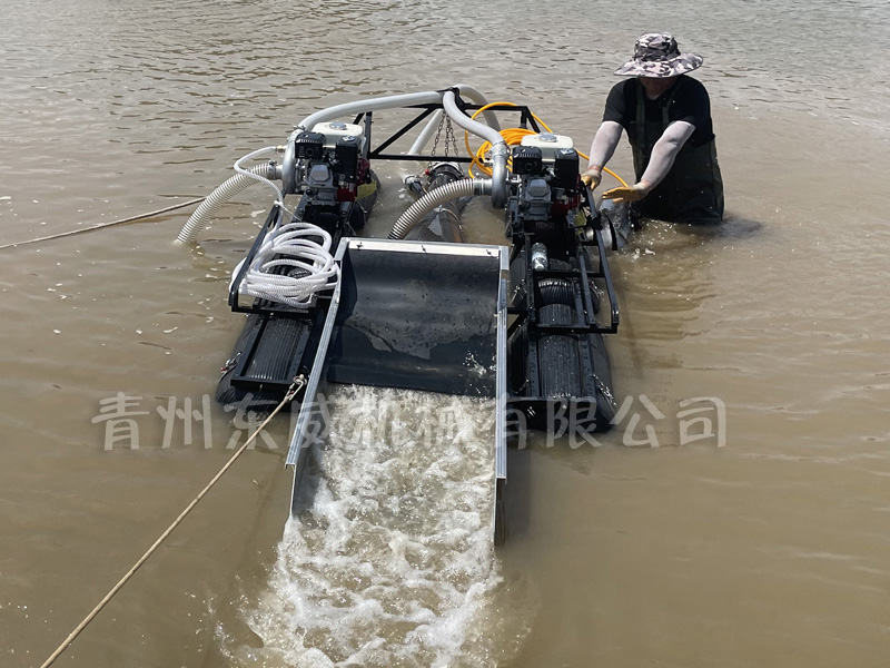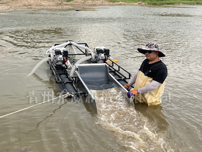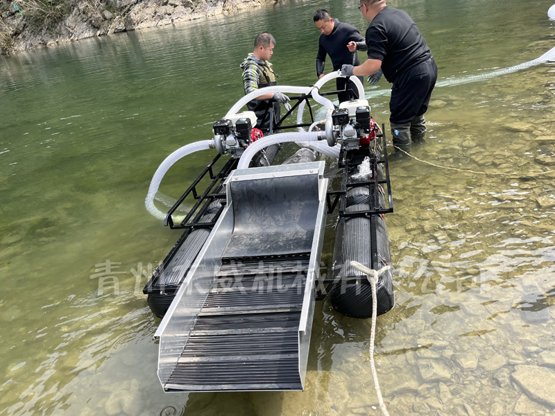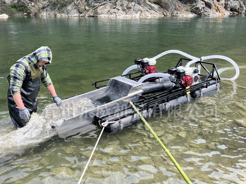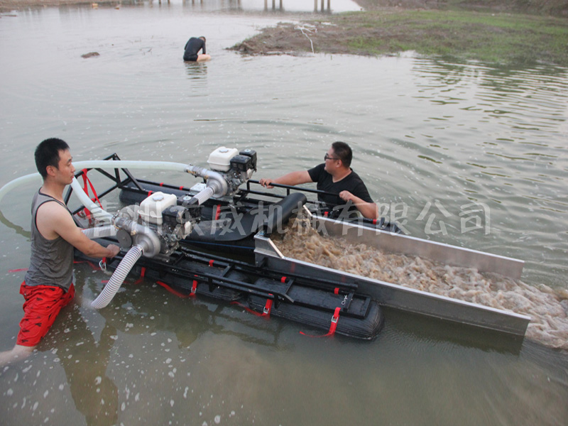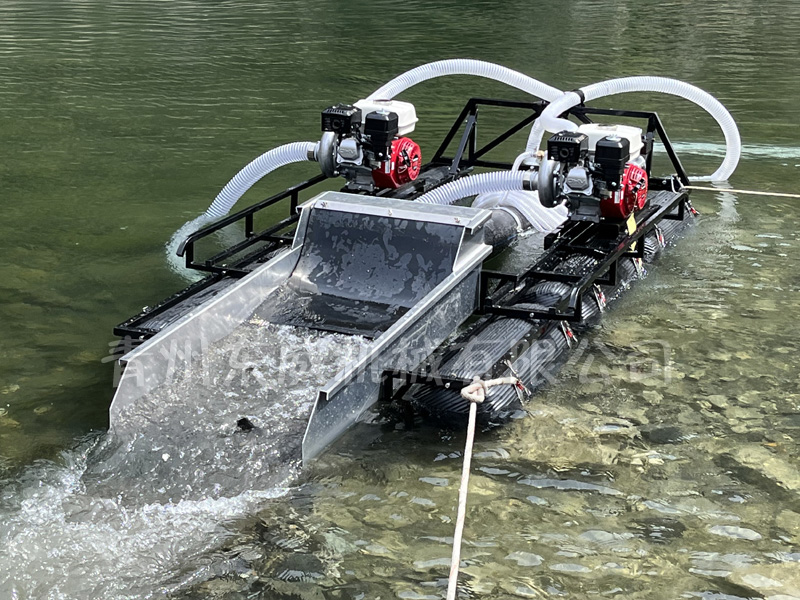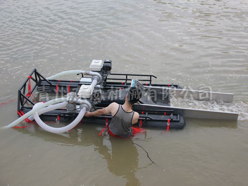 該設(shè)備抽沙系統(tǒng)采用新型結(jié)構(gòu),原料抽取過(guò)程中物料不流經(jīng)泵組,不用考慮泵和葉輪的磨損;沙金重選裝置為我公司專門研發(fā)的橡膠選金墊,沙金提取效率高,可對(duì)毛細(xì)金、片狀金進(jìn)行回收;適用于中小型礦場(chǎng)、河道、小溪淘金、探礦作業(yè);