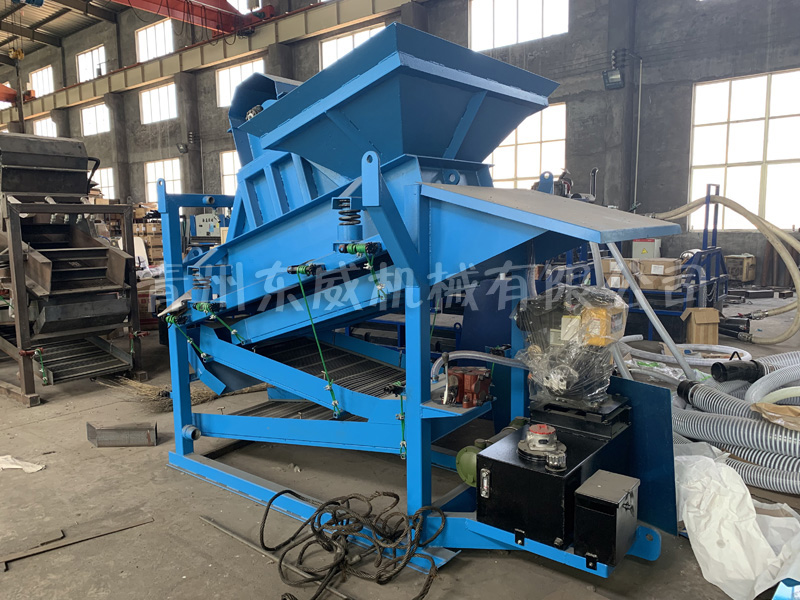振動(dòng)式選金機(jī)是一個(gè)緊湊型、可移動(dòng)的整體結(jié)構(gòu)。頂部為篩條部分,可以將大塊物料隔除,同時(shí)物料落入二次篩分機(jī)構(gòu),充分篩分后,高壓力水將沙子沖入溜槽選金。該選金機(jī)結(jié)構(gòu)金緊湊、操作簡(jiǎn)單、低運(yùn)行成本。明顯比市場(chǎng)上其它選金設(shè)備有優(yōu)勢(shì),無需豐富的選金經(jīng)驗(yàn)即可操作。