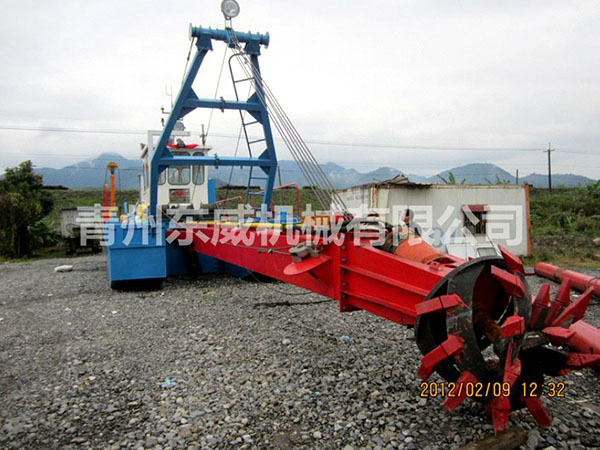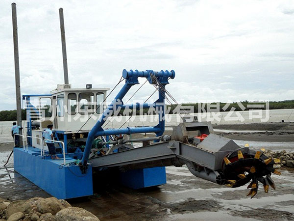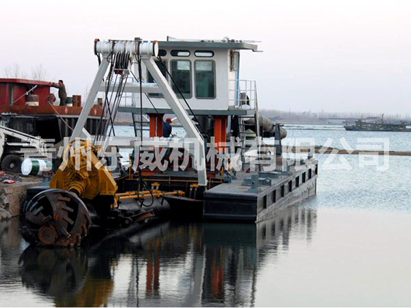 絞吸式挖沙船是目前在河道開采、清淤中運(yùn)用較廣泛的一種船舶,它是利用吸泥管前端圍繞吸泥管裝設(shè)旋轉(zhuǎn)絞刀裝置,將河底泥沙進(jìn)行切割和攪動(dòng),再經(jīng)吸泥管將絞起的泥沙物料,借助強(qiáng)大的泵力,輸送到泥沙物料堆積場(chǎng),它的挖泥、運(yùn)泥、卸泥等工作過程,可以一次連續(xù)完成,它是一種效率高、成本較低的清淤工具,是良好的水下挖掘機(jī)械。