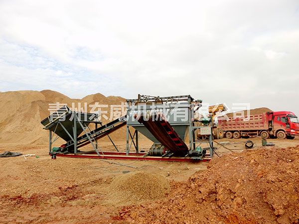 DW-SS型篩沙機由料倉、上料機、滾筒篩、沙子輸送機、石子輸送機等部分組成,主要針對石頭較多的工況,動力部分可選用電機或柴油機帶動,根據(jù)篩沙機配置,可篩分多種規(guī)格物料(比如沙子、1-2cm石子、2-4cm石子、廢料等),適用于沙場、河道、建筑工地等工況使用。